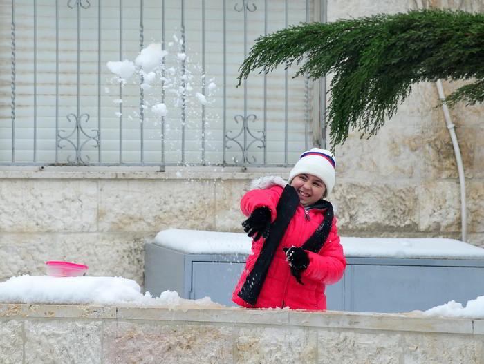 [프레스뉴스] 채정병 특파원=18일(현지시간) 요르단 암만의 한 주택 앞에서 한 아이가 눈 놀이를 하고 있다.