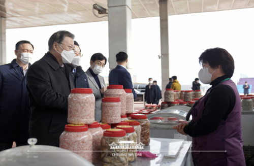 ▲ 문 대통령이 5일 신안젓갈타운을 찾았다. (출처 : 청와대) |