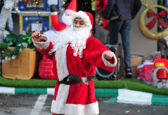 [프레스뉴스] 채정병 특파원=24일(현지시간) 크리스마스를 하루 앞둔 목요일 오후, 요르단 암만의 한 선물가게 앞에서 산타 복장의 남성이 열심히 몸을 흔들고 있다.  이슬람국가지만 기독교인 비율이 전체 인구의 약 6%를 차지하는 요르단은 코로나19로 매주 금요일마다 시행되는 전국봉쇄(Total Lockdown)가 적용돼 가장 적막한 크리스마스가 될 예정이다.