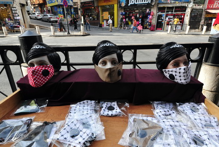 (프레스뉴스)채정병 특파원=3일(현지시간) 요르단 코로나-19 확진자가 매일 50~60명씩 발생하는 가운데 암만 구시가지의 한 노점상에서 아랍 전통 문양의 마스크를 판매하고 있다.