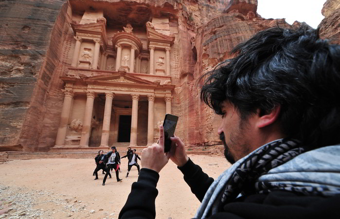 | ▲29일(현지시간) 한 남성이 삼성 갤럭시 S21 울트라로 아름다운 페트라와 커버댄스를 촬영하고 있다. |