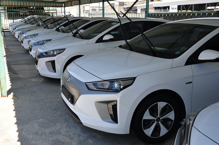 | 요르단 중고차 매장에 진열되어 있는 현대 아이오닉 전기차들 |