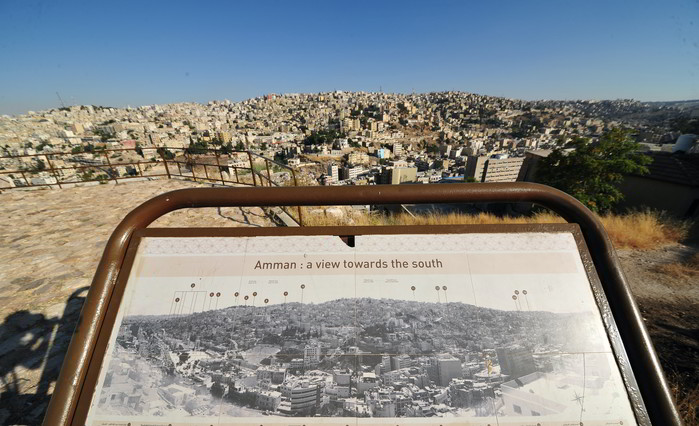 (프레스뉴스)채정병 기자= 암만성채 내 관광객들을 위한 암만 구시가지 안내지도와 실사가 동시에 펼쳐져 있다. 암만은 해발 평균 800-1,000m의 산지에 위치하고 있다.
