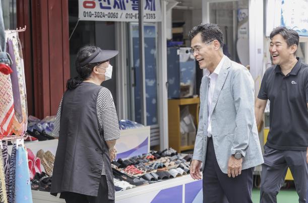 | ▲ 지역 소상공인과 대화하고 있는 이기재 양천구청장 |