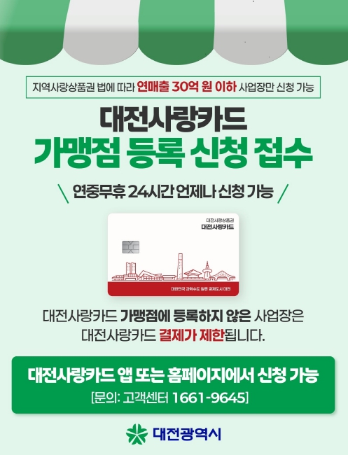 시는 경기 둔화 장기화와 내수 회복 지연에 따라 지역경제에 대한 하방 압력이 커지고 있다는 판단 아래, 신속한 대응 차원에서 대전사랑카드 운영을 조기 결정했다.