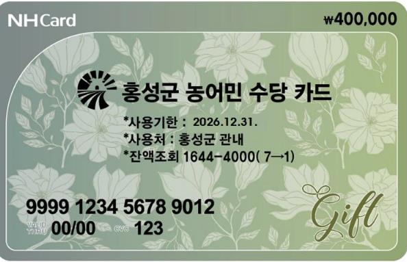 군은 지난 2월부터 읍·면 행정복지센터를 통해 농어민수당 지원신청을 접수받았으며, 올해 지급대상자로 확정된 농업인(농업,임업,축산업) 17,458명에 홍성군에서 사용 가능한 선불카드로 지급한다.