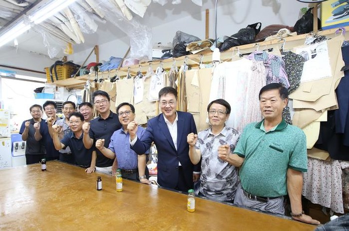 ▲ 지난해 9월 관내 봉제사업장을 방문한 정문헌 종로구청장의 모습 |