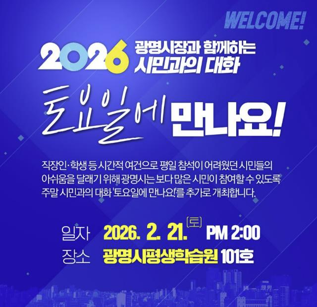 광명시는 오는 21일 오후 2시 평생학습원(철망산로 2)에서 ‘2026년 시민과의 대화-토요일에 만나요!’를 개최한다고 19일 밝혔다.
