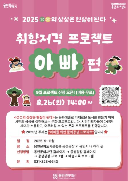 용인문화재단은 오는 9월부터 시민기획 프로젝트 〈○○의 상상은 현실이 된다 – 취향저격 프로젝트 : 아빠편〉을 통해 다양한 문화예술 교육·체험 프로그램을 선보인다.