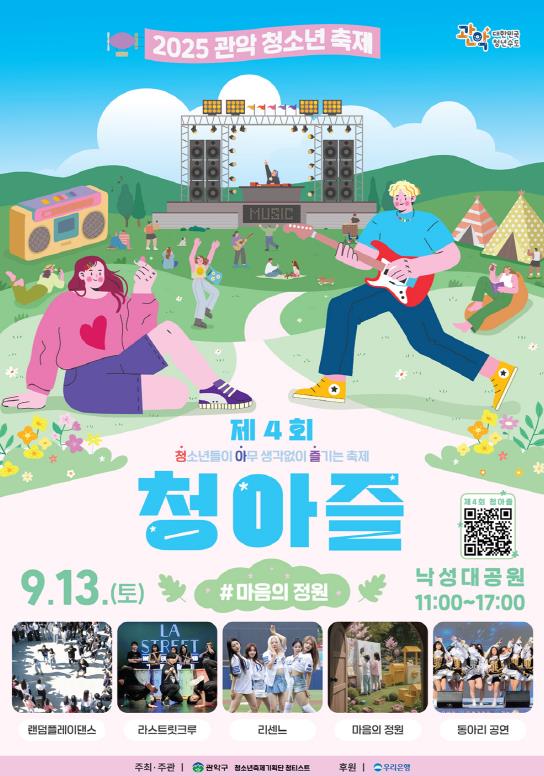 관악구가 오는 9월 13일 낙성대공원에서 2025 관악 청소년 축제 ‘제4회 청아즐(부제: 마음의 정원)’을 개최한다.