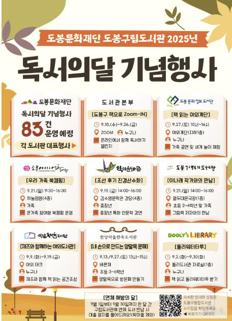 서울 도봉구 도봉문화재단 소속 7개 도봉구립도서관이 9월 ‘독서의 달’을 맞아 총 83개의 독서 문화행사를 마련했다.