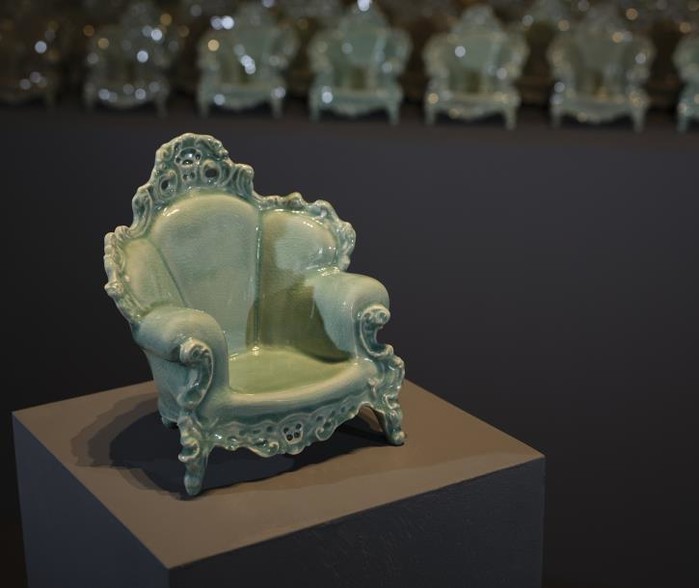 경기도자미술관은 동서양 거장의 협업 작품 ‘108번뇌’를 선보였다. 이 소장품은 ▲세계적인 이탈리아 디자이너 알레산드로 멘디니의 대표작 ‘푸르스트 의자’를 디자인 요소로 활용하고 ▲대한민국 근현대 청자 명장 고(故) 유근형이 설립한 해강고려청자 연구소의 ‘전통 고려청자 기법’으로 재해석해 제작됐다.