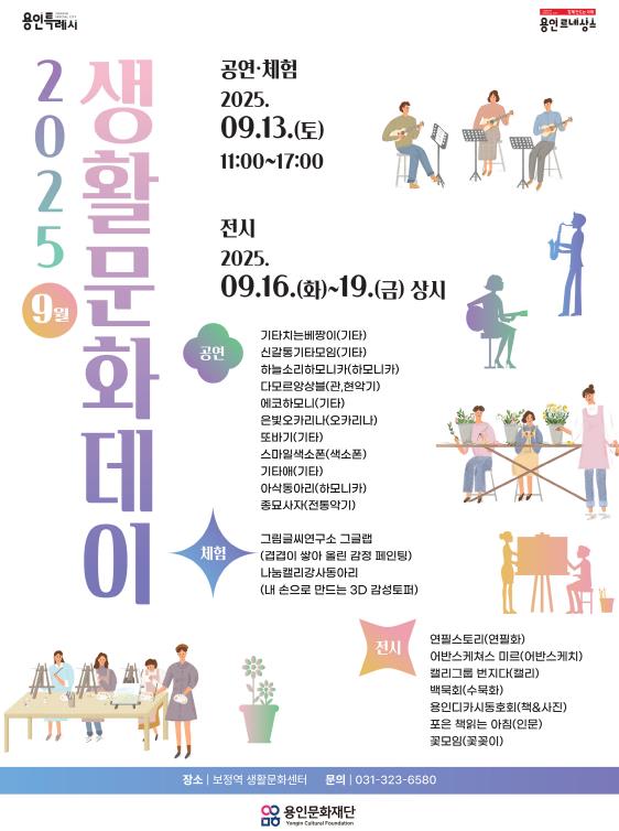 용인문화재단은 오는 9월 13일 보정역 생활문화센터에서 ‘9월 생활문화데이’를 개최한다고 밝혔다.