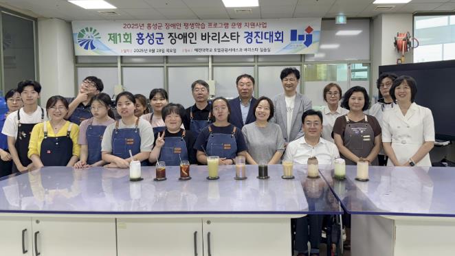 홍성군은 지난 28일 혜전대학교에서 '제1회 홍성군 장애인 바리스타 대회'를 열었다고 밝혔다. 이번 대회는 홍성군 고향사랑기금을 활용해 공모한 ‘2025년 장애인 평생학습 프로그램 운영사업’의 일환으로, 보조사업자인 혜전대학교가 프로그램을 운영하며 그동안의 학습 성과를 공유하고 참가자들의 성취를 격려하기 위해 마련됐다.