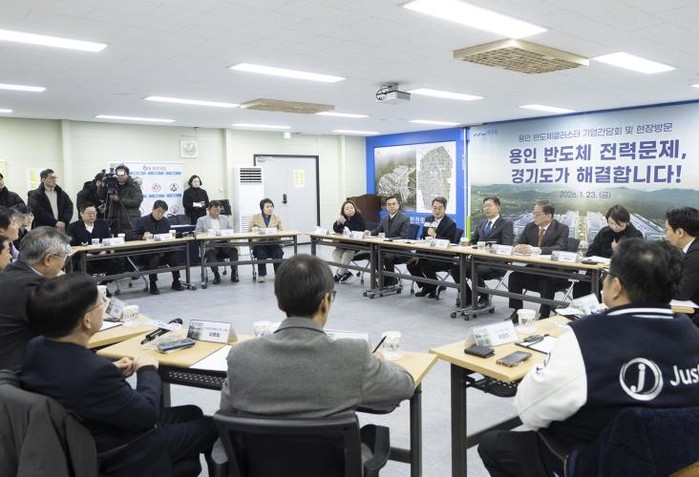 | ▲ 1월 23일 김동연 지사가 용인반도체클러스터 기업인들과 간담회를 하고 있다. |