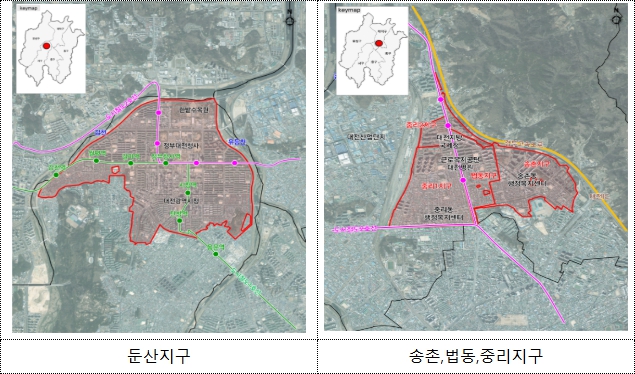 | ▲ 대전시 노후계획도시정비 기본계획 수립 대상 위치도 |