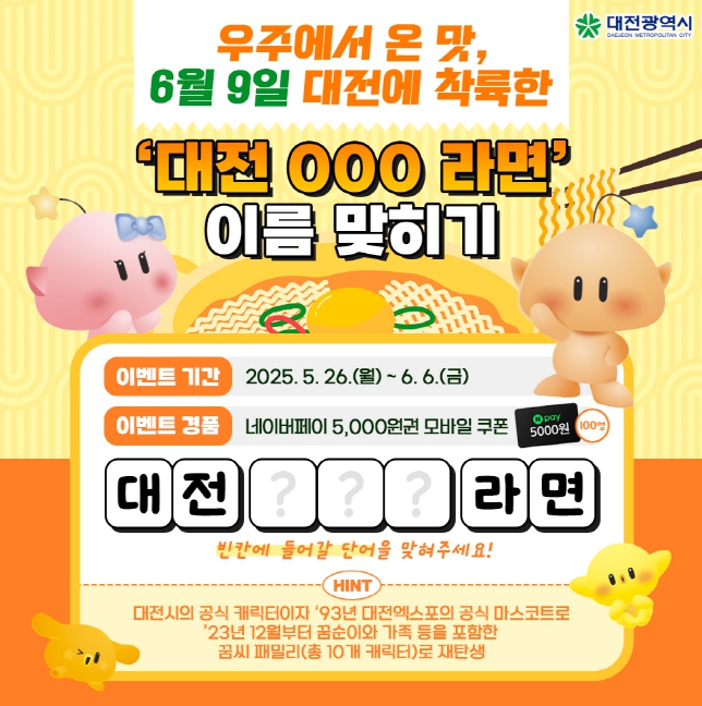 | ▲ 대전 꿈돌이 라면, 6월 9일 출시 기념 SNS 이벤트 |