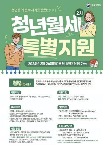 청년 주거안정 위한 한시적 특별지원