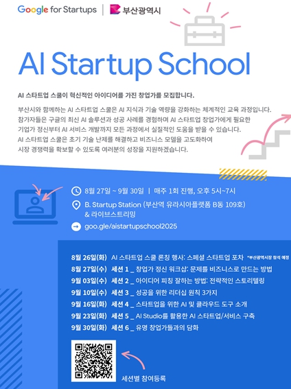 올해는 인공지능(AI) 기반 신생기업(스타트업)의 역량 강화를 중심으로 '스타트업 스쿨'이 진행되며, 국내에서는 부산에서 유일하게 개최된다.
