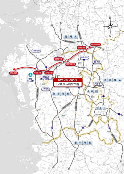 태안-안성 고속도로는 태안읍에서 서산, 예산, 당진, 아산, 천안 등 도내 5개 시군을 거쳐 경기도 안성까지 94.6㎞를 연결하는 사업으로, 총 사업비는 3조 7000억 원에 달한다.