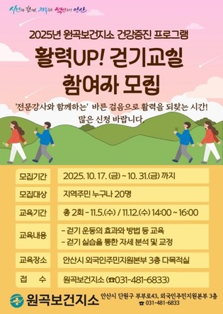 안산시 원곡보건지소, ‘활력UP! 걷기 교실’ 참여자 모집