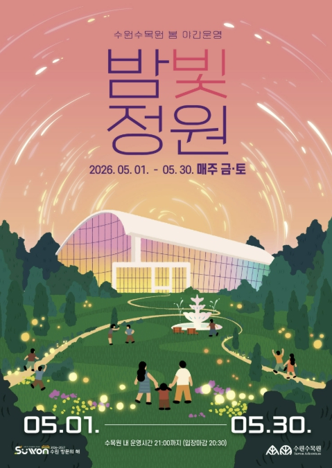 수원특례시가 5월 1일부터 30일까지 매주 금·토요일 일월·영흥수목원에서 ‘2026년 수원수목원 봄 밤빛정원’을 연다.