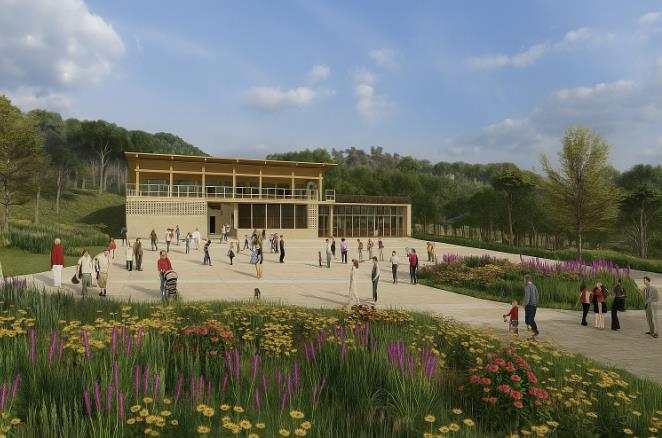 센터 외부는 탄소 저장 능력이 뛰어난 국산 목재를 활용한 목조 건축을 통해 탄소중립 실현에 앞장서는 랜드마크형 실내정원 문화공간으로 조성한다.