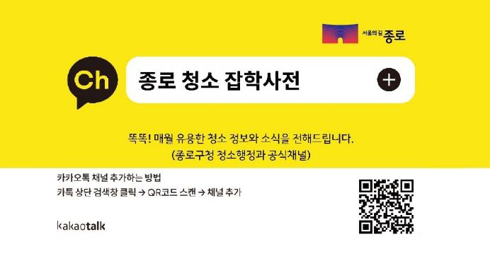 종로구는 2026년 1월부터 카카오톡 채널을 통해 청소 정보를 쉽고 빠르게 받아볼 수 있는 '종로 청소 잡학사전' 운영을 시작한다.