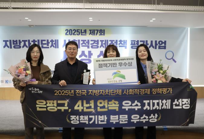 서울 은평구는 ‘2025년 제7회 전국 지방자치단체 사회적경제정책 평가’에서 ‘정책기반 부문 우수상’을 수상했다고 밝혔다.