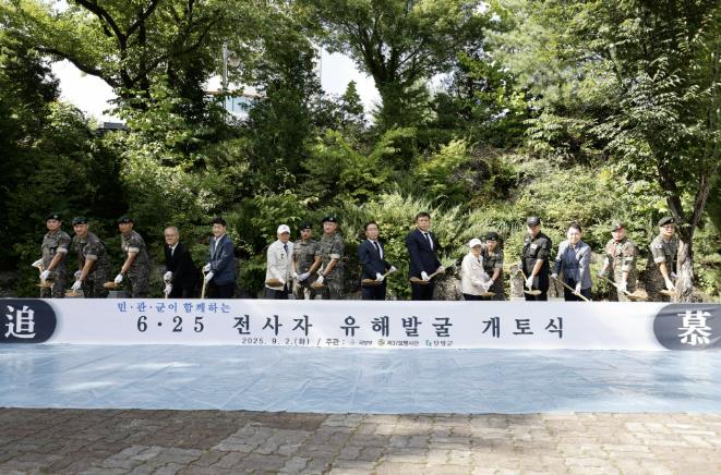 이어진 ‘시삽 행사’에서는 주요 참석자들이 함께 첫 삽을 뜨며 75년간 이름 모를 산야에 잠들어 있던 호국영웅들의 귀환을 염원하고, 발굴 임무를 맡은 장병들의 안전을 기원했다.