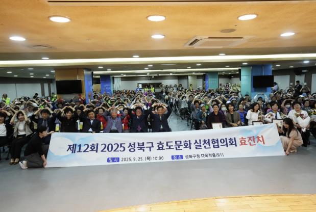 성북구 효도문화실천협의회가 10월 경로의 달을 앞두고 9월 25일 성북구청 다목적홀에서 ‘제12회 성북구 효도문화실천협의회 효잔치’를 열었다. 이날 행사에는 지역 독거어르신과 효행 표창자, 주민과 초청 인사 등 300여 명이 참석해 경로효친의 의미를 함께 나눴다.