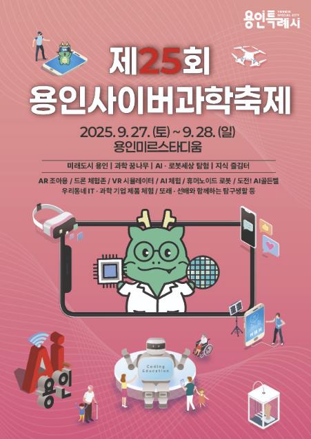 용인특례시는 27일부터 28일까지 용인미르스타디움‘에서 열리는 ’제30회 용인시민의 날‘ 행사에서 ’2025 용인사이버과학축제‘를 개최한다고 19일 밝혔다.