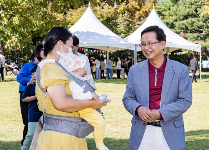 ▲ 지난해 유아숲 가족축제에 참여한 최호권 영등포구청장 |