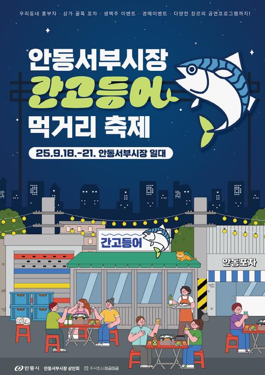 안동시와 서부시장 상인회는 오는 9월 18일부터 21일까지 매일 오후 6시부터 자정까지 서부시장 일원에서 '2025 안동 서부시장 간고등어 먹거리 축제'를 개최한다.