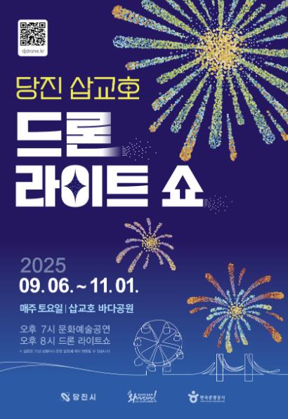 당진시는 오는 9월 6일부터 11월 1일까지 매주 토요일, 삽교호 관광지 바다공원에서 ‘2025 당진 삽교호 드론 라이트 쇼’를 진행한다.