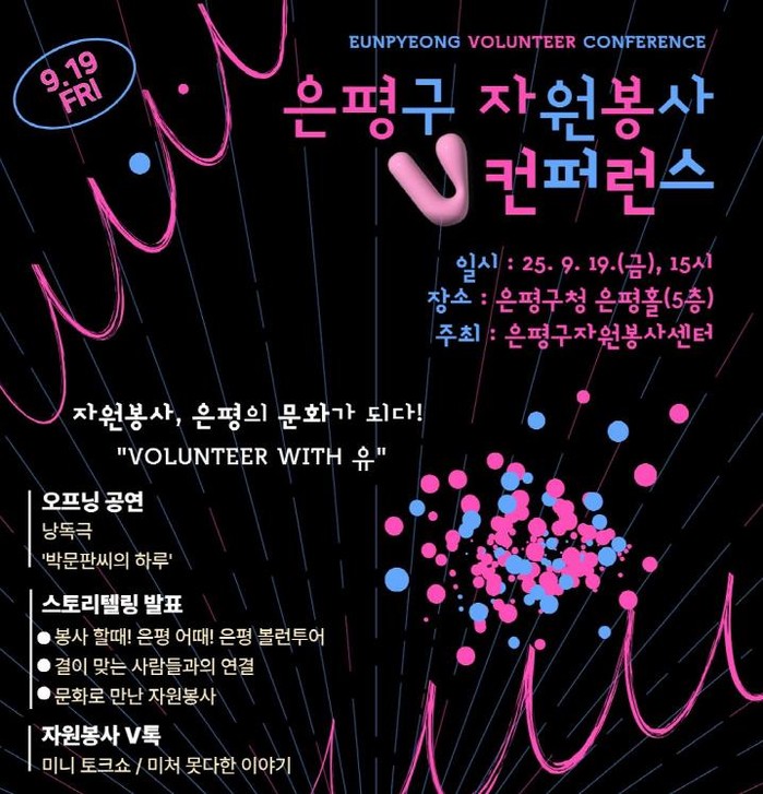 오는 19일에 진행될 2025년 은평구 자원봉사 컨퍼런스에서는 구호에 대한 발표를 시작으로 ▲봉사할 때, 은평 어때, 은평볼런투어 ▲결이 맞는 사람들과의 연결 ▲문화로 만나 자원봉사에 대한 현장 활동가 발표와 토론으로 시민 담론의 장이 열린다.