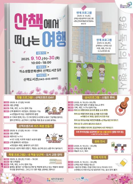 제천문화재단 관계자는“9월 독서의 달 행사를 통해 시민들이 독서로 즐거움을 얻고, 산책도서관이 시민 삶 속에 깊이 스며드길 바란다” 고 전했다.