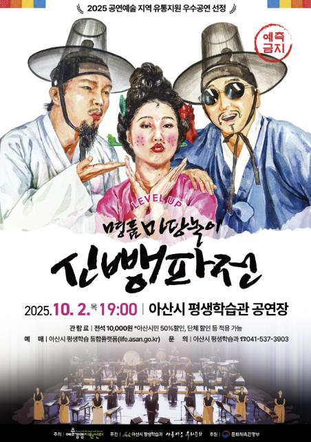 아산시가 오는 10월 2일 오후 7시 아산시평생학습관 대공연장에서 명품 마당놀이 '신뺑파전'을 무대에 올린다.