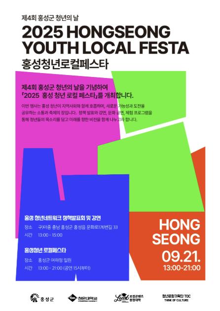 이용록 홍성군수는 “홍성의 청년들은 행사의 손님이 아니라 기획자이자 주인공”이라며, “청년이 만들어가는 로컬페스타가 새로운 청년문화 모델이 되어 많은 청년들이 영감을 얻고, 서로를 응원하는 자리가 되기를 바란다”고 전했다.