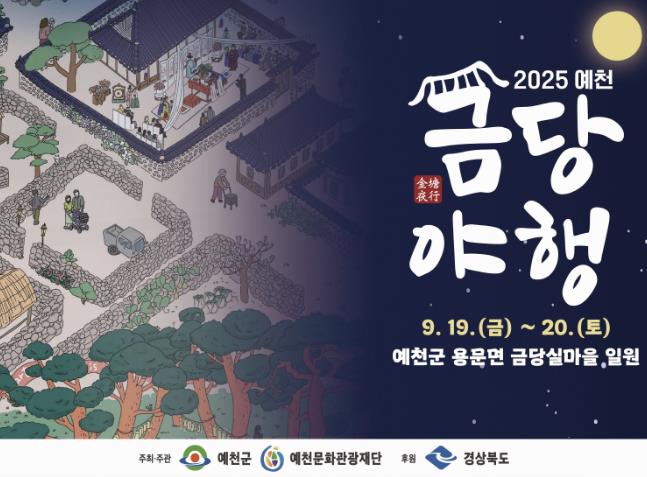 (재)예천문화관광재단은 이달 19일부터 20일까지 이틀간 예천군 용문면에 위치한 금당실전통마을에서 ‘2025 예천 금당야행’을 개최한다.