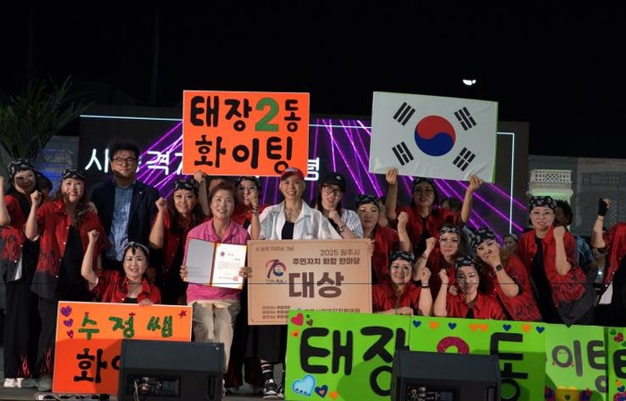 이날 영예의 대상은 3개의 댄스 동아리가 뭉쳐 조화로운 무대를 선보여준 태장2동 주민자치센터의 ‘태2크루’ 팀이 수상했다. 최우수상에는 행구동, 우수상에는 지정면이 각각 선정됐다.