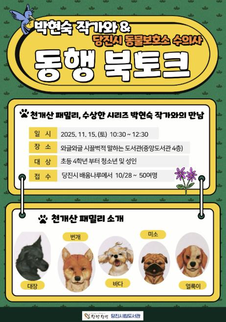 또한 행사 현장에서는 유기 및 반려동물 보호와 대처법에 대한 안내와 함께, 당진시 동물보호소의 지원활동도 소개한다. 참가자들은 반려동물 입양과 보호의 중요성, 책임 있는 돌봄 문화에 대해 이해를 높일 수 있을 것으로 기대된다.