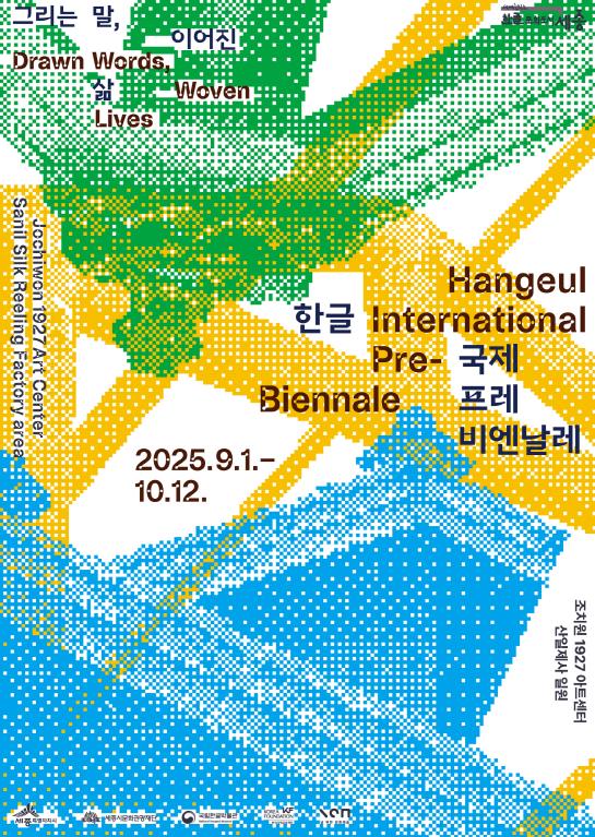 세종특별자치시와 세종시문화관광재단은 9월 1일부터 10월 12일까지 42일간 조치원 1927아트센터, 산일제사 등 조치원 일원에서 ‘2025 한글 국제 프레 비엔날레’를 개최한다.