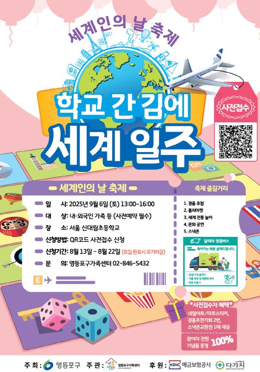 다문화축제는 이날 오후 1시부터 4시까지 신대림초등학교에서 열린다. ‘세계인의 날 축제 - 학교 간 김에 세계 일주’를 주제로, 외국인 주민과 지역 주민이 함께 어울려 서로의 문화를 이해하고 존중하는 건강한 지역 사회를 만들기 위해 기획됐다.
