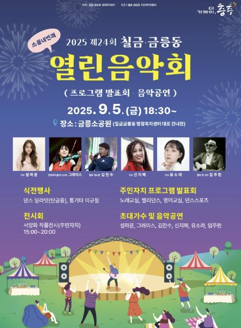 칠금????금릉동 주민자치위원회가 주관하는 열린음악회는 매년 지역 주민들이 손꼽아 기다리는 문화와 소통의 축제다.