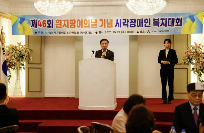 김문근 단양군수는 축사를 통해 “흰지팡이가 상징하는 용기 있는 독립과 자주적인 삶의 가치를 되새기며, ‘건강한 단양, 살고 싶은 단양’을 만들기 위해 모두가 함께하는 따뜻한 공동체를 이뤄가겠다”고 말했다.
