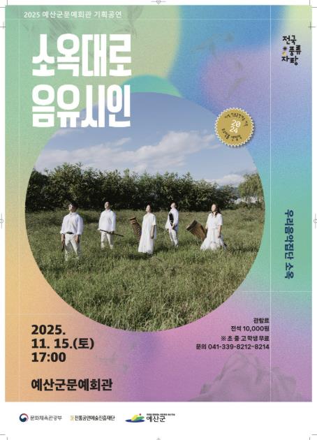 예산군문예회관은 오는 11월 15일 오후 5시, 퓨전국악 공연 ‘소옥대로 음유시인’을 선보인다.