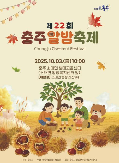 전국 최고의 품질을 자랑하는 충주 알밤을 주제로 한 제22회 충주 알밤축제가 오는 10월 3일 오전 10시, 충주시 소태면 생태고을센터(소태면행정복지센터 앞) 일원에서 열린다.