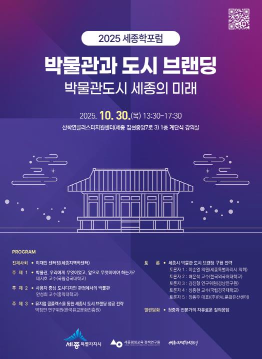 오는 30일 박물관과 도시브랜딩 주제 '2025 세종학포럼' 개최