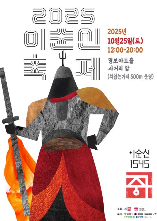 충무공 이순신 생가터 인근 명보아트홀 사거리 일원이 새로운 축제로 물든다. 서울 중구가 오는 25일 낮12시부터 저녁 8시까지 ‘2025 이순신 축제’를 개최한다. 올해 첫선을 보이는 축제는 주민들과 함께 ‘이순신 장군의 탄생지, 중구’의 정체성을 되새기며 ‘이순신1545 중구’ 선포, ‘철인 이순신’ 선발, 120명이 채우는 대형캔버스, 해군홍보대 공연, 205m 먹거리존 등 다채로운 프로그램을 펼친다.